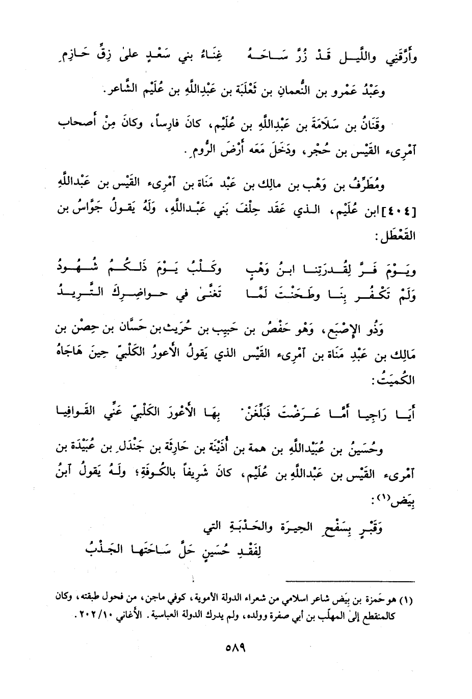 وذو الإِصبع، وهو حفصُ بن حبيب بن حُريث بن حسَّان بن حصن بن مالك بن عبدِ مناة بن امرىء القيس الذي يقول الأعور الكلبيّ حين هاجاهُ الكميتُ: