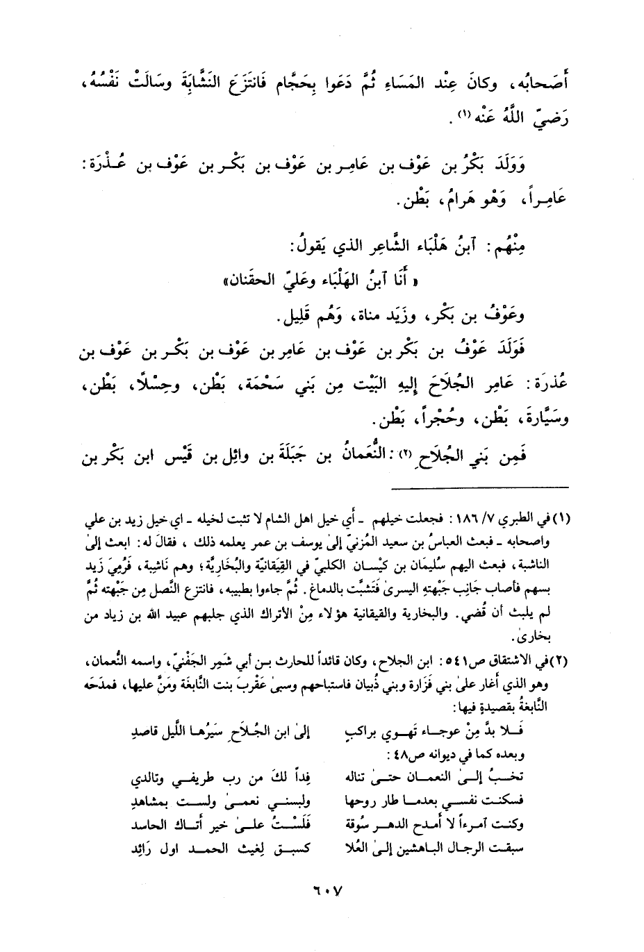 فمن بني الجُلاح: النُّعمانُ بن جبلة بن وائل بن قيس ابن بكر بن