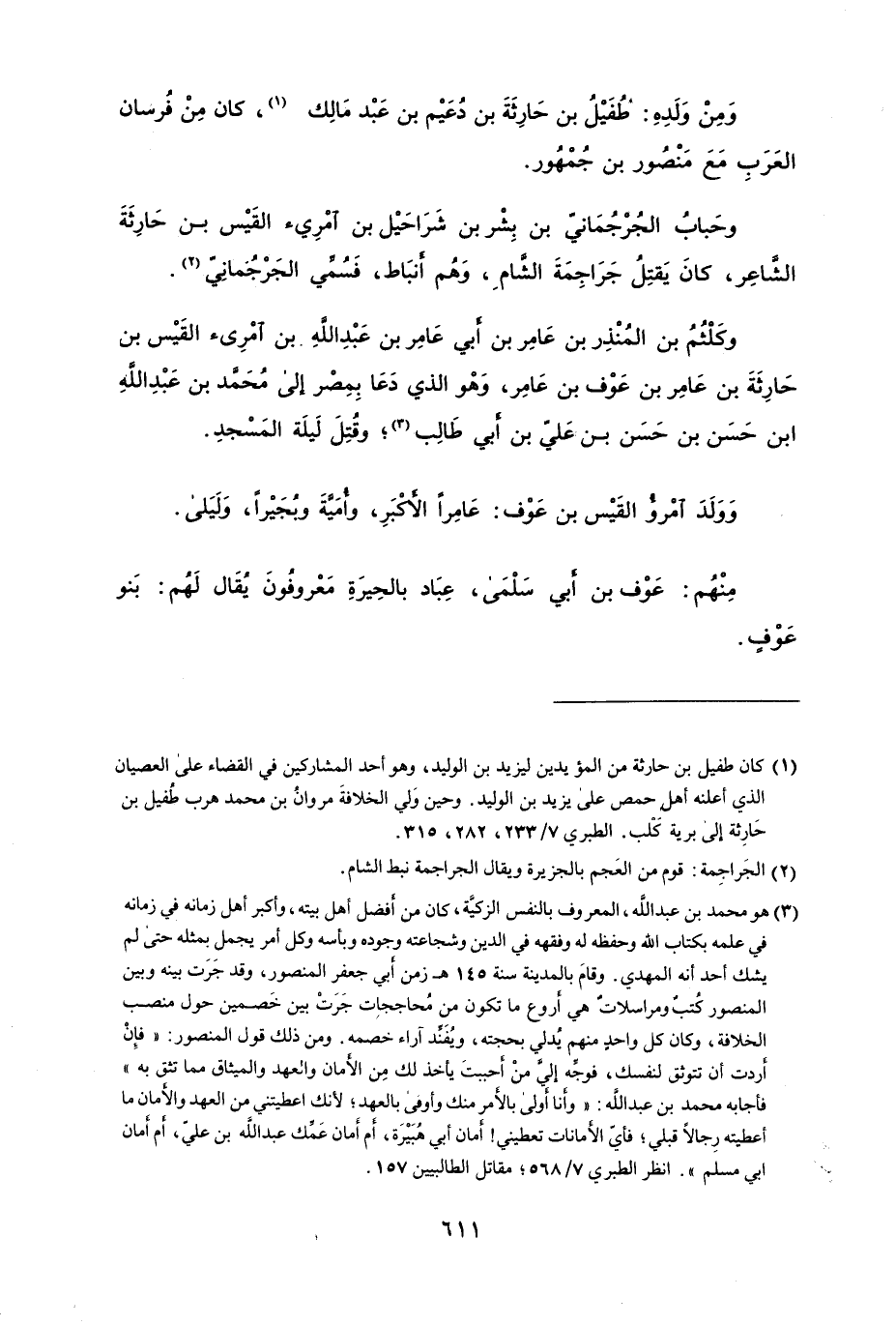 ومن ولدهِ: طُفيلُ بن حارثةَ بن دُعيم بن عبد مالك، كان من فرسان العرب مع منصور بن جُمهور.
