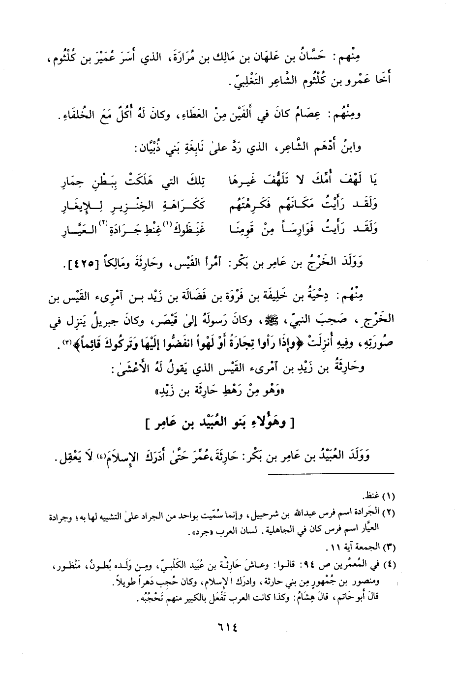 منهم: دِحيةُ بن خليفة بن فروة بن فضالة بن زيد بن امرىء القيس بن الخرجِ، صَحبَ النبيّ، صلى الله عليه وسلم، وكان رَسولهُ إلى قيصر، وكان جبريلُ ينزل في صُورتهِ، وفيهِ أُنزلت (وإِذا رأوا تجارةً أَو لهواً انفضُّوا إليها وَتَركُوكَ قائماً) .