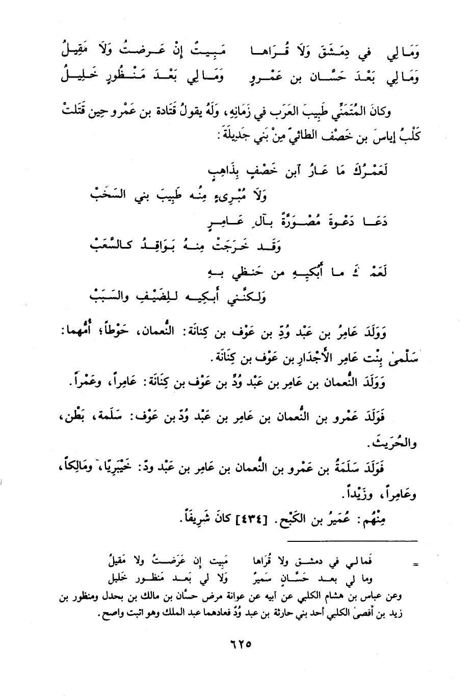 لعمركَ ما أَبكيهِ من حنظي بهِ ... ولكنَّني أَبكيه للضيفِ والسبب