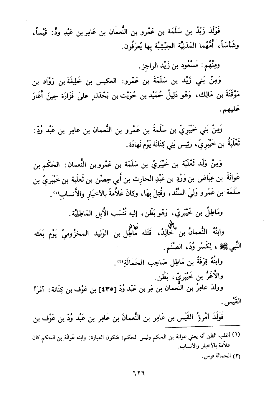 ومن ولد ثعلبة بن خيبريّ بن سلمة بن عمرو بن النُّعمان: الحكم بن عوانةَ بن عياض بن ورد بن عبدِالحارث بن أَبي حصن بن ثعلبة بن خيبريّ بن سلمة بن عمرو وليَ السِّند، وقُتل بها، وكان علامةً بالأخبارِ والأَنسابِ.