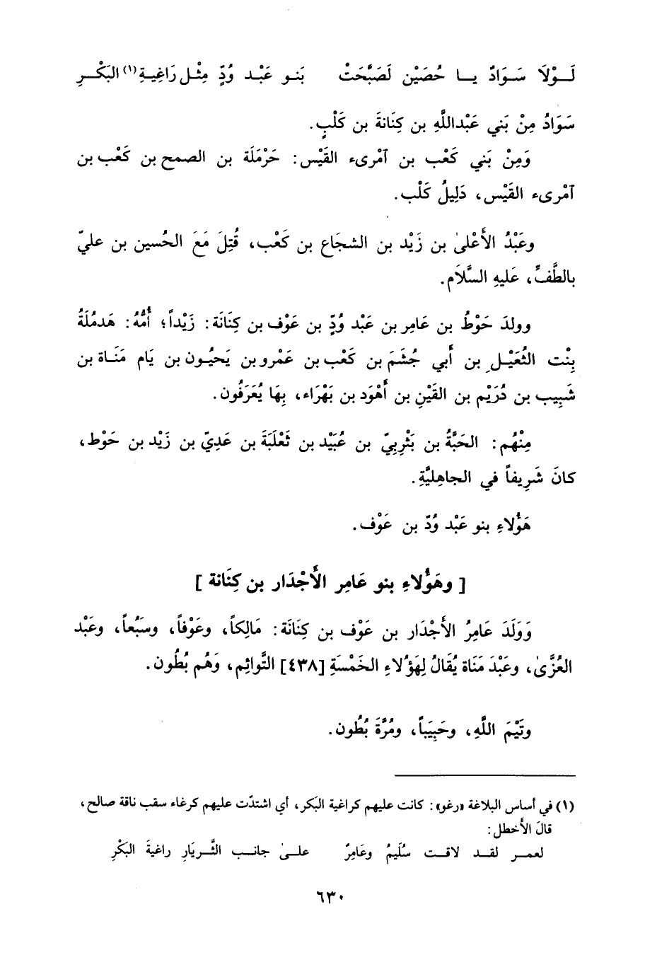وولدَ عامرُ الأَجدار بن عوف بن كنانة: مالكاً، وعوفاً، وسبعاً، وعبد العزَّى، وعبدَ مناة يُقالُ لهؤلاءِ الخمسةِ التَّوائم، وهم بطون.