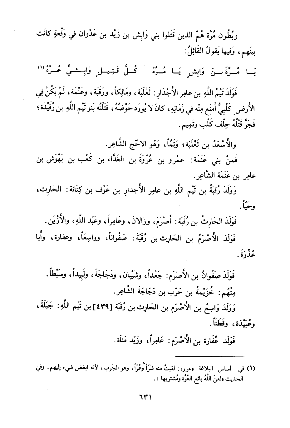 يا مُرَّةَ بن وابشٍ يا مرَّهْ ... كُلُّ قتيلٍ وابشيٍّ عُرَّه
