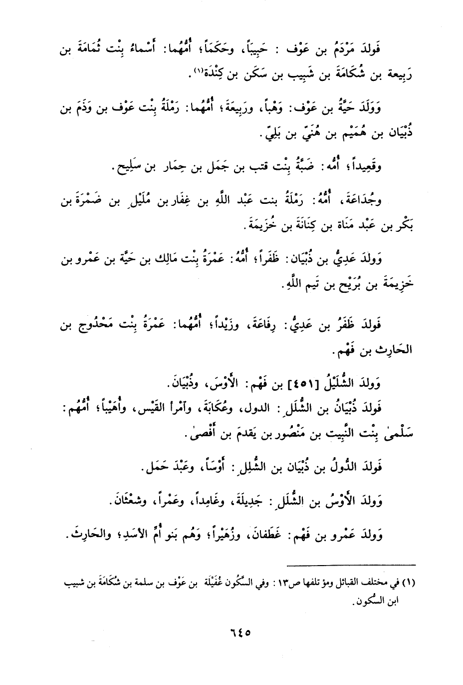 وولدَ الشُّليلُ بن فهم: الأوسَ، وذُبيانَ.