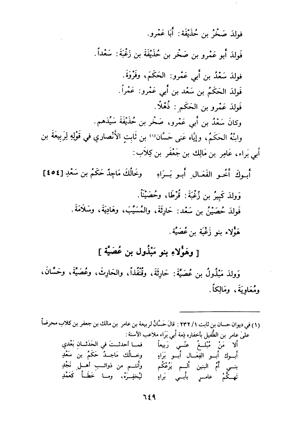 وابنهُ الحكمُ، وإِياه عنى حسان بن ثابتٍ الأنصاري في قولهِ لربيعةَ بن أَبي براء، عامر بن مالك بن جعفر بن كلاب: