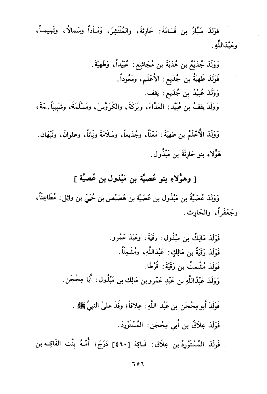 وولدَ يقف بن عُبيد: العدَّاءَ، وبركةَ، والكروَّسَ، ومسلمةَ، وشبيباً ئمةَ، وولدَ الأعلمُ بن طهيَةَ: معناً، وجُديعاً، وسلامةَ وناناً، وعلوانَ، ونبهان.