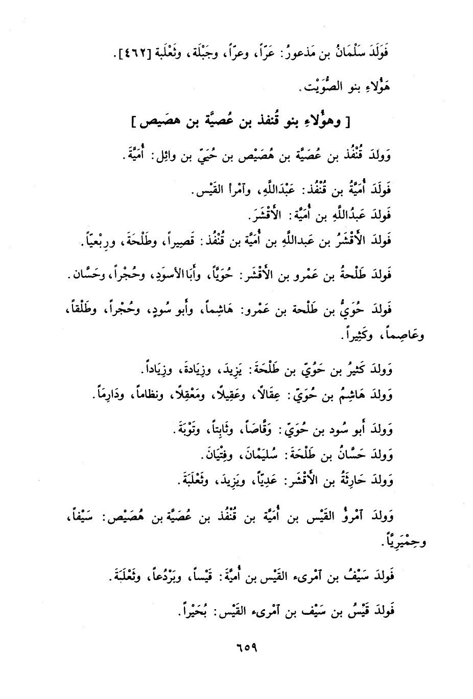 وهؤلاءِ بنو قُنفذ بن عُصيَّة بن هصيص