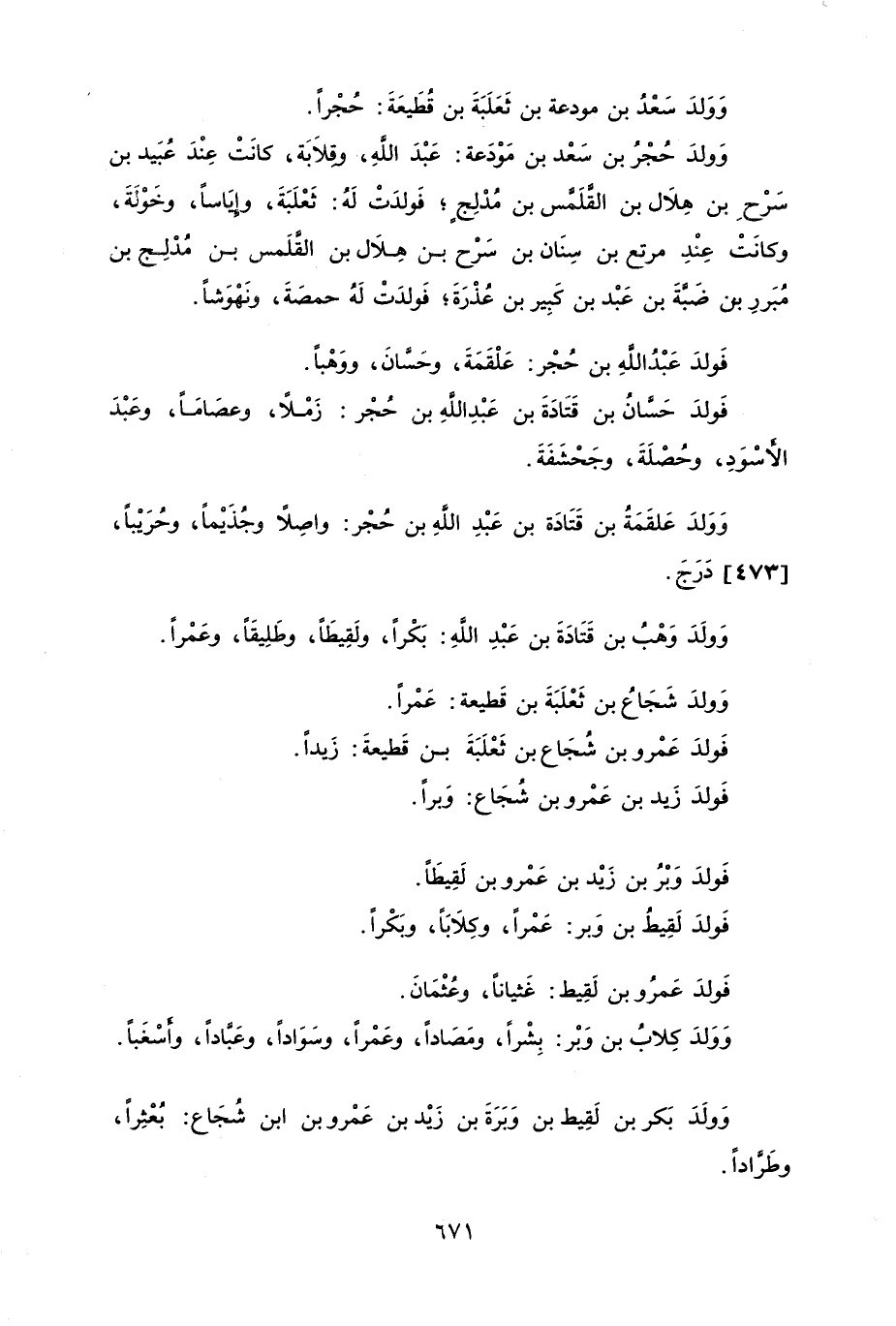 وولدَ علقمةُ بن قتادة بن عبد الله بن حجر: واصلاً وجذيماً، وحُريباً، درج.