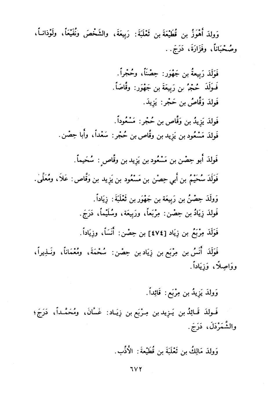 فولد زيادُ بن حصن: مربعاً، وربيعة، وسُليماً، درج.