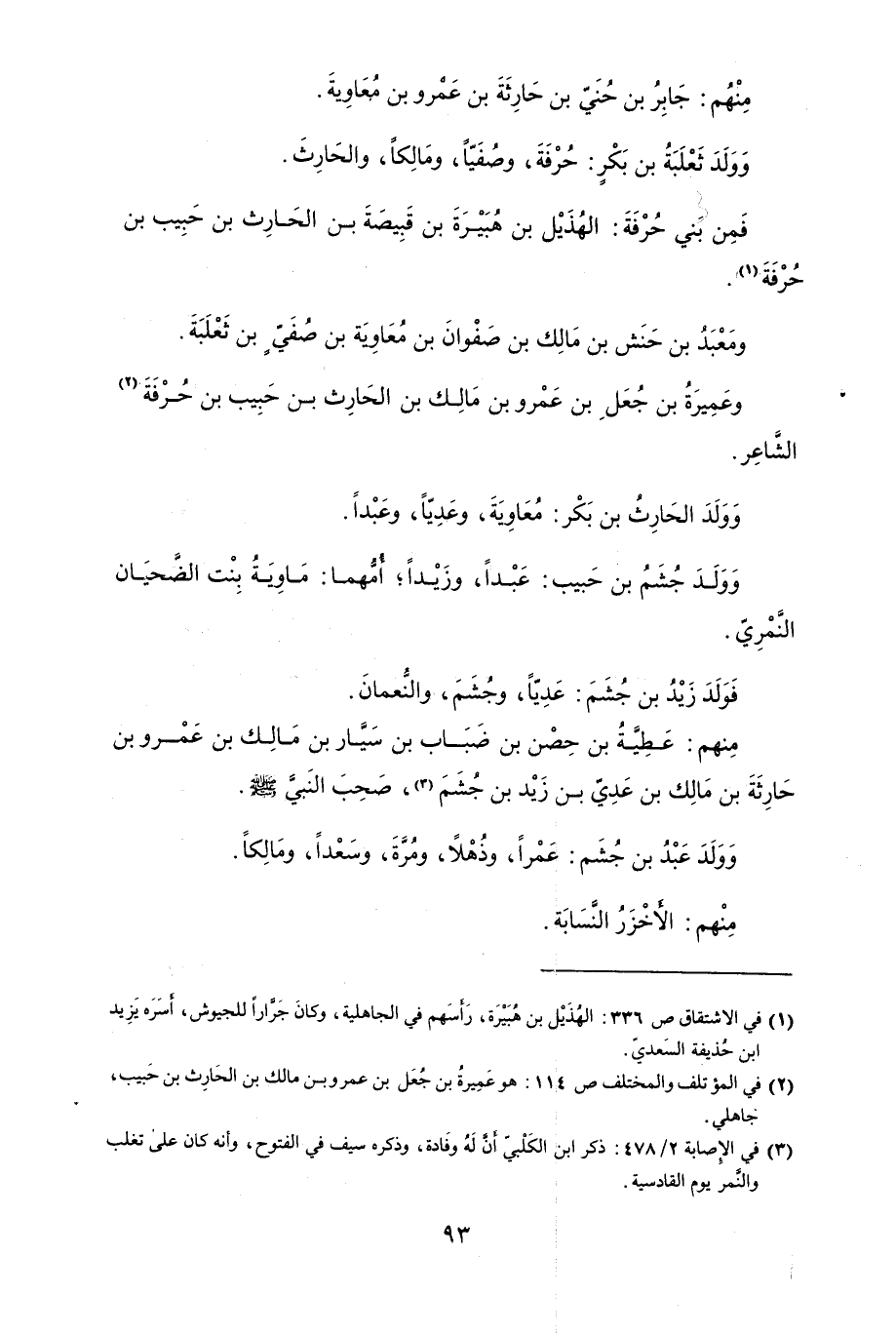 وولضدَ عبْد بن جُشم: عمراً، وذُهلاً، ومُرةَ، وسعْداً، ومَالكاً.