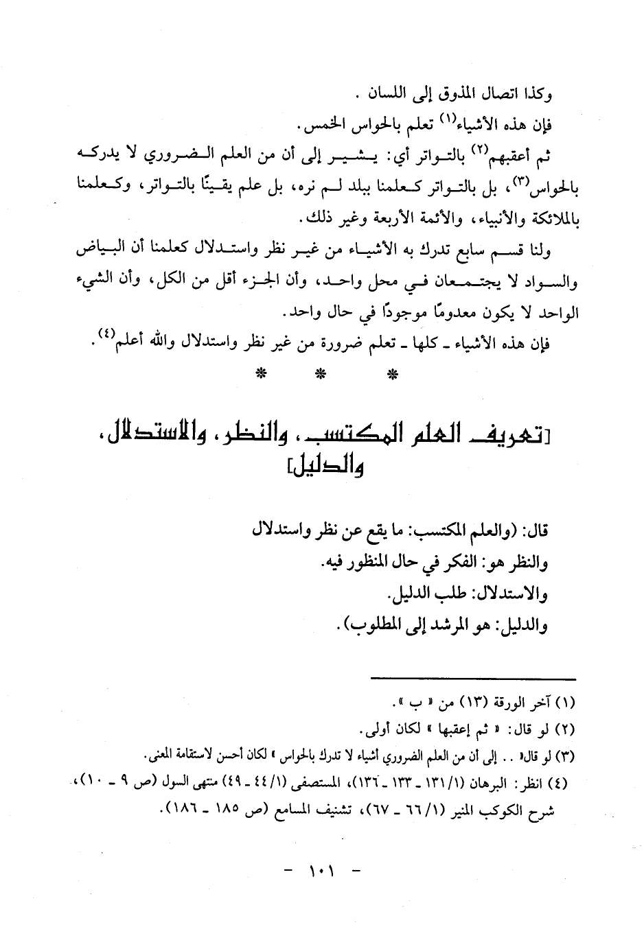[تَعْرِيف الْعلم المكتسب، وَالنَّظَر، وَالِاسْتِدْلَال وَالدَّلِيل]