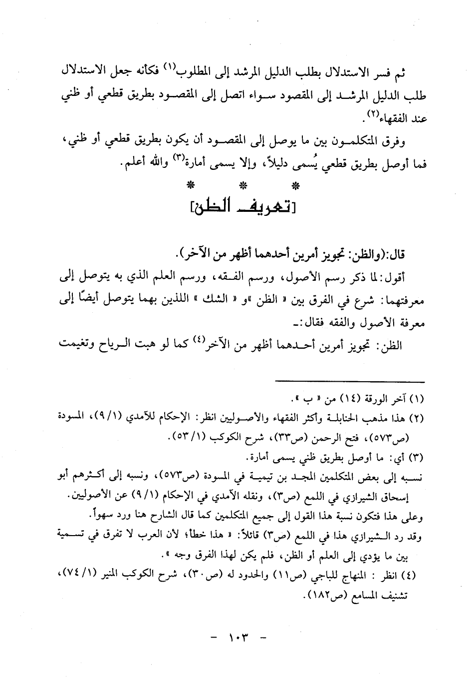 ثمَّ فسر الِاسْتِدْلَال بِطَلَب الدَّلِيل المرشد إِلَى الْمَطْلُوب، فَكَأَنَّهُ جعل الِاسْتِدْلَال طلب الدَّلِيل المرشد إِلَى الْمَقْصُود سَوَاء اتَّصل إِلَى الْمَقْصُود بطرِيق قَطْعِيّ أَو ظَنِّي عِنْد الْفُقَهَاء.