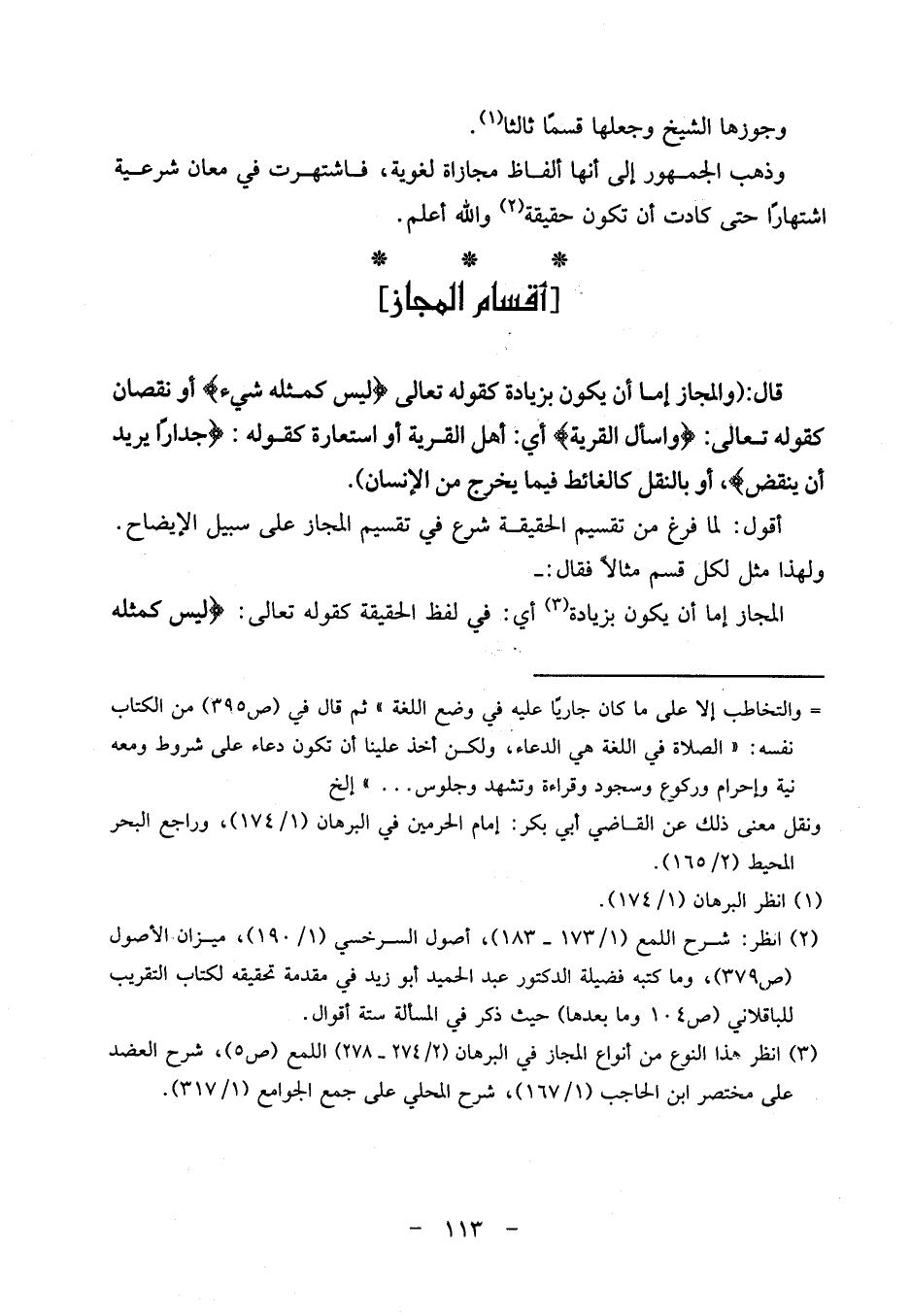 قَالَ: (وَالْمجَاز إِمَّا أَن يكون بِزِيَادَة كَقَوْلِه تَعَالَى {لَيْسَ كمثله شَيْء}