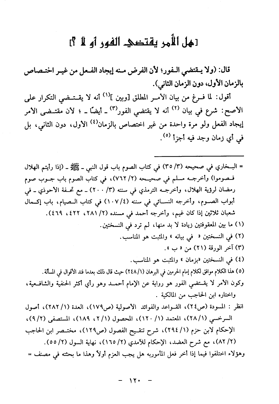 أَقُول: لما فرغ من بَيَان الْأَمر الْمُطلق [وَبَين] أَنه لَا يَقْتَضِي التّكْرَار على الْأَصَح: شرع فِي بَيَان أَنه لَا يَقْتَضِي الْفَوْر - أَيْضا -؛ لِأَن مُقْتَضى الْأَمر إِيجَاد الْفِعْل وَلَو مرّة وَاحِدَة من غير اخْتِصَاص بِالزَّمَانِ الأول، دون الثَّانِي، بل فِي أَي زمَان وجد فِيهِ أَجْزَأَ.