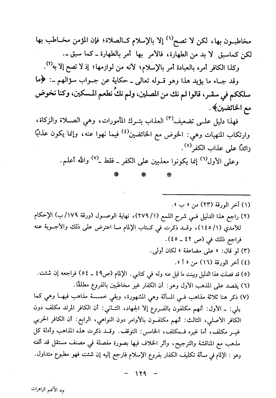 مخاطبون بهَا، لَكِن لَا تصح إِلَّا بِالْإِسْلَامِ كَالصَّلَاةِ؛ فَإِن الْمُؤمن مُخَاطب بهَا لَكِن كَمَا سبق لَا بُد من الطَّهَارَة، فَالْأَمْر بهَا أَمر بِالطَّهَارَةِ - كَمَا سبق -.