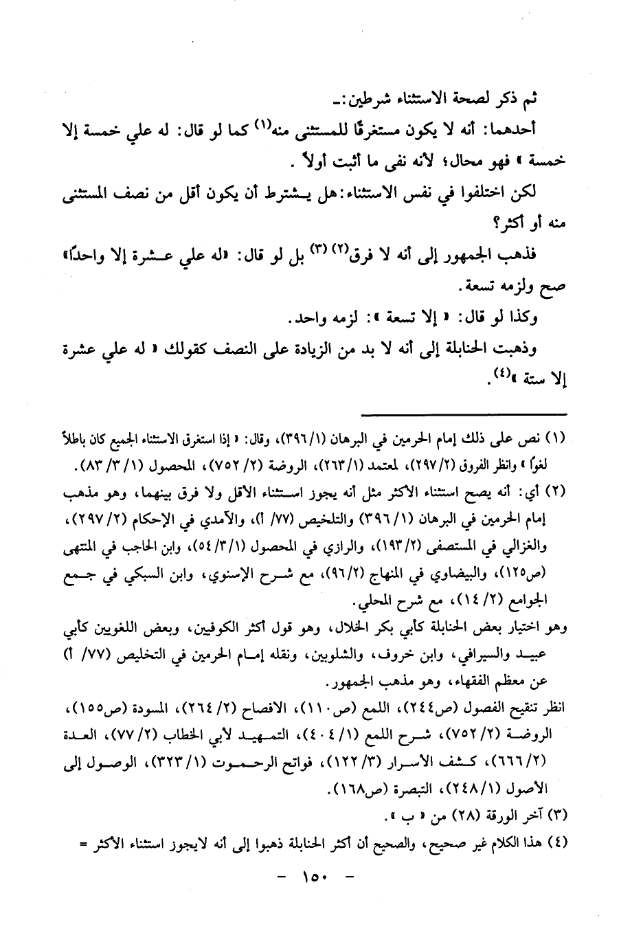 ثمَّ ذكر لصِحَّة الِاسْتِثْنَاء شرطين: -