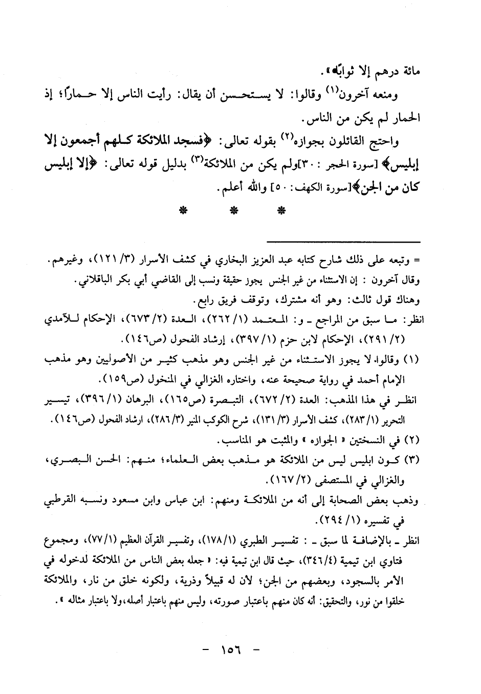 وَاحْتج الْقَائِلُونَ بِجَوَازِهِ بقوله تَعَالَى {فَسجدَ الْمَلَائِكَة كلهم أَجْمَعُونَ إِلَّا إِبْلِيس} [سُورَة الْحجر: 30] وَلم يكن من الْمَلَائِكَة بِدَلِيل قَوْله تَعَالَى: {إِلَّا إِبْلِيس كَانَ من الْجِنّ} [سُورَة الْكَهْف: 50] وَالله أعلم.
