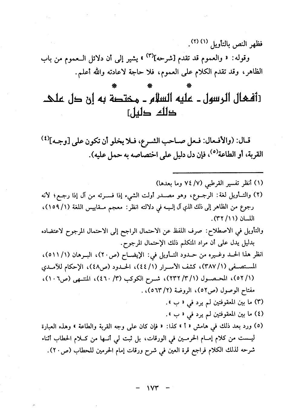 قَالَ: (وَالْأَفْعَال: فعل صَاحب الشَّرْع، فَلَا يَخْلُو أَن تكون على [وَجه] الْقرْبَة، أَو الطَّاعَة، فَإِن دلّ دَلِيل على اخْتِصَاصه بِهِ حمل عَلَيْهِ) .