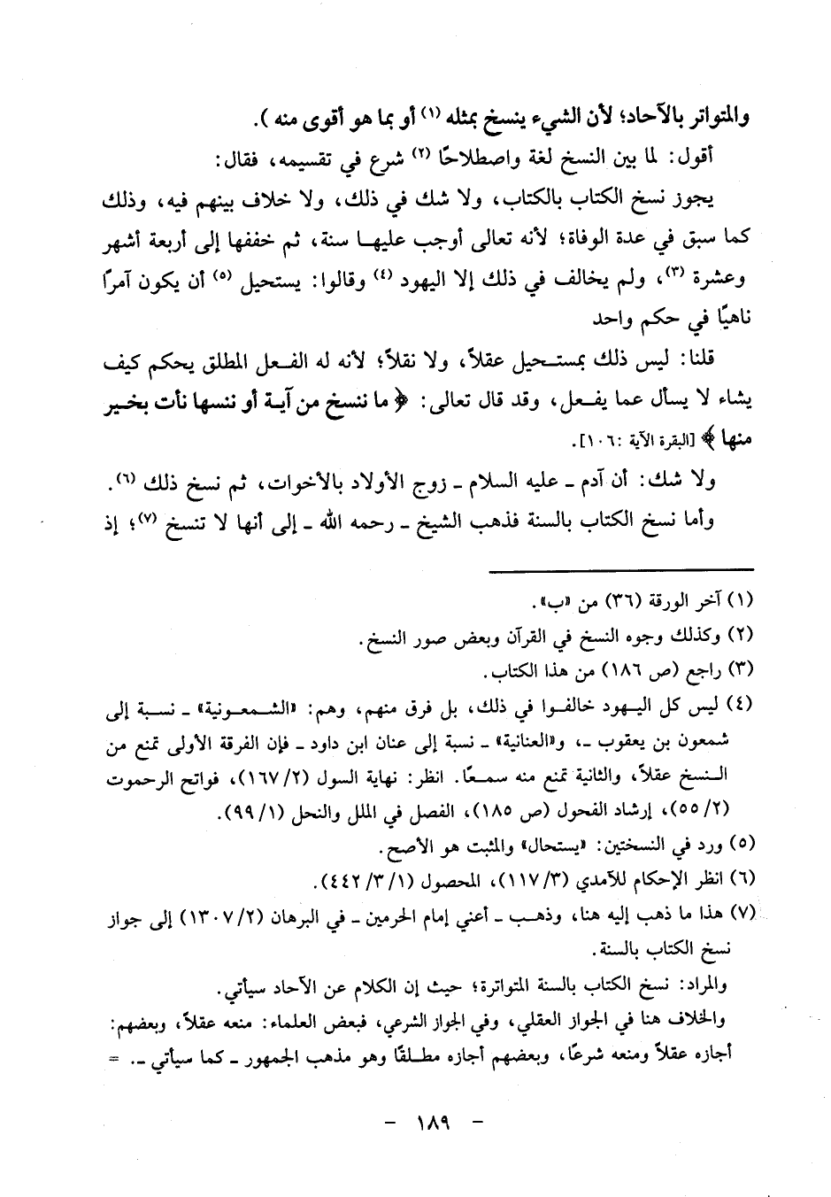قُلْنَا: لَيْسَ ذَلِك بمستحيل عقلا، وَلَا نقلا، لِأَنَّهُ لَهُ الْفِعْل الْمُطلق يحكم كَيفَ يَشَاء لَا يسْأَل عَمَّا يفعل، وَقد قَالَ تَعَالَى: {مَا ننسخ من آيَة أَو ننسها نأت بِخَير مِنْهَا} [الْبَقَرَة الْآيَة: 106] .