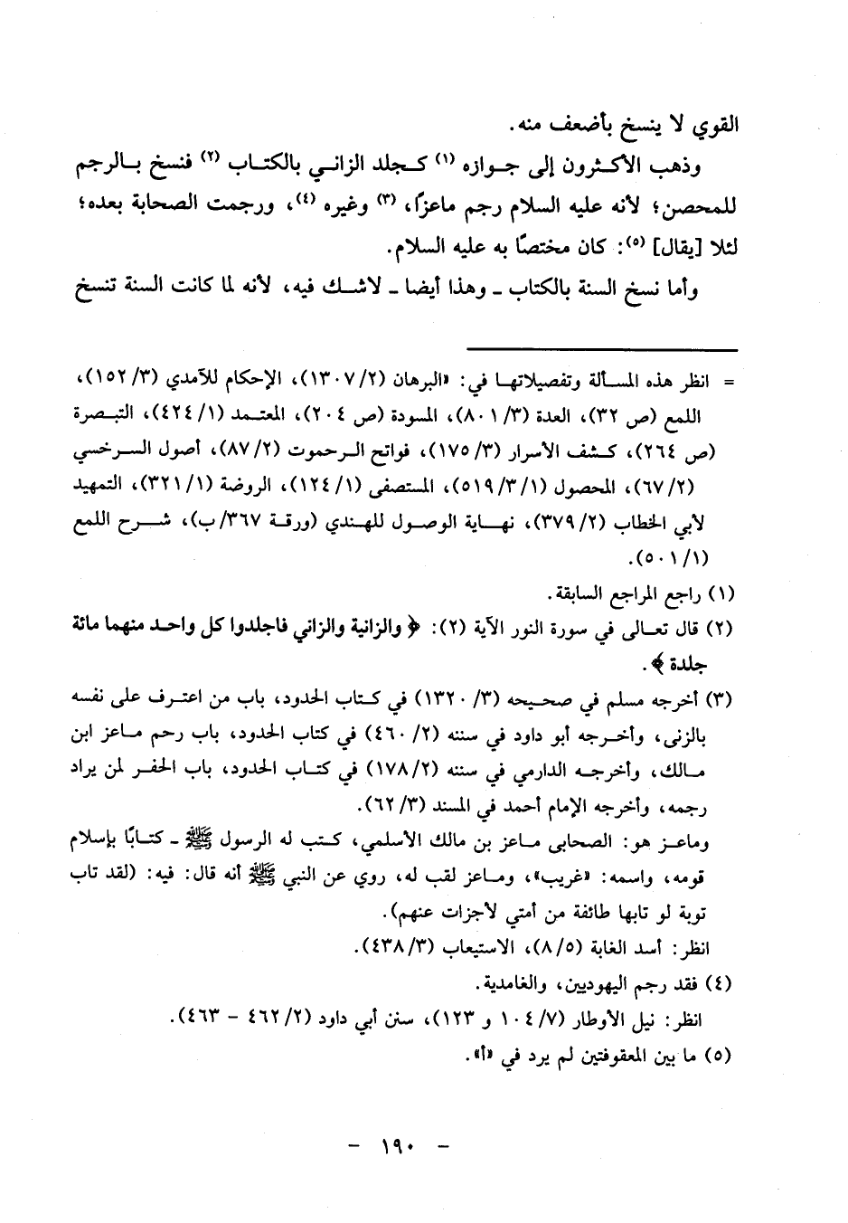 وَذهب الْأَكْثَرُونَ إِلَى جَوَازه كَجلْد الزَّانِي بِالْكتاب فنسخ بِالرَّجمِ للمحصن؛ لِأَنَّهُ عَلَيْهِ السَّلَام رجم ماعزاً وَغَيره، ورجمت الصَّحَابَة بعده؛ لِئَلَّا [يُقَال] : كَانَ مُخْتَصًّا بِهِ عَلَيْهِ السَّلَام.