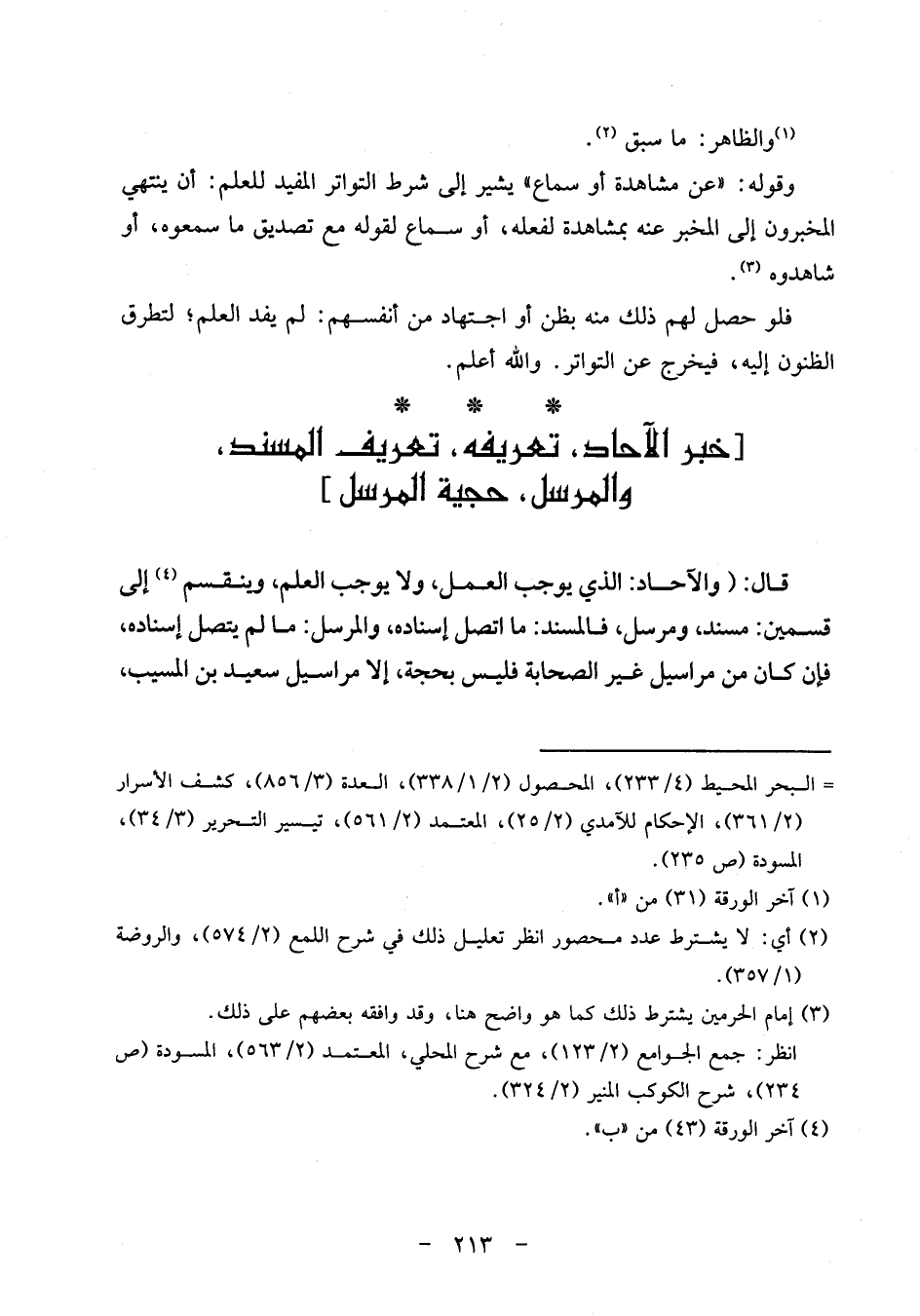 [خبر الْآحَاد، تَعْرِيفه، تَعْرِيف الْمسند، والمرسل، حجية الْمُرْسل]