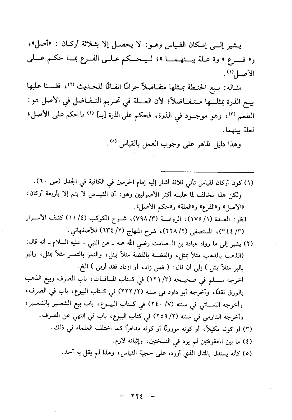 يُشِير إِلَى إِمْكَان الْقيَاس وَهُوَ: لَا يحصل إِلَّا بِثَلَاثَة أَرْكَان: " أصل "، و " فرع " و " عِلّة بَينهمَا "؛ ليحكم على الْفَرْع بِمَا حكم على الأَصْل.