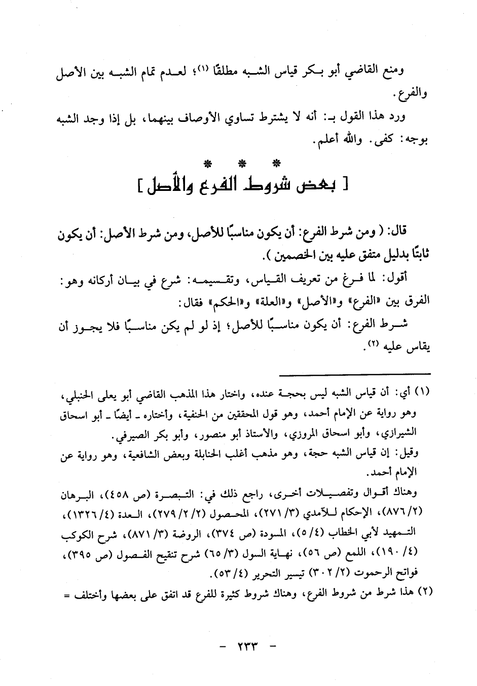 [بعض شُرُوط الْفَرْع وَالْأَصْل]