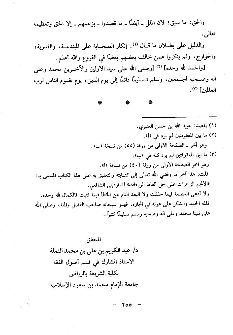 وَالدَّلِيل على بطلَان مَا قَالَ: إِنْكَار الصَّحَابَة على المبتدعة، والقدرية، والخوارج، وَلم ينكروا عَمَّن خَالف بَعضهم بَعْضًا فِي الْفُرُوع وَالله أعلم. [وَالْحَمْد لله وَحده] [وَصلى الله على سيد الْأَوَّلين والآخرين مُحَمَّد وعَلى آله وَصَحبه أَجْمَعِينَ، وَسلم تَسْلِيمًا دَائِما إِلَى يَوْم الدّين، يَوْم يقوم النَّاس لرب الْعَالمين] .