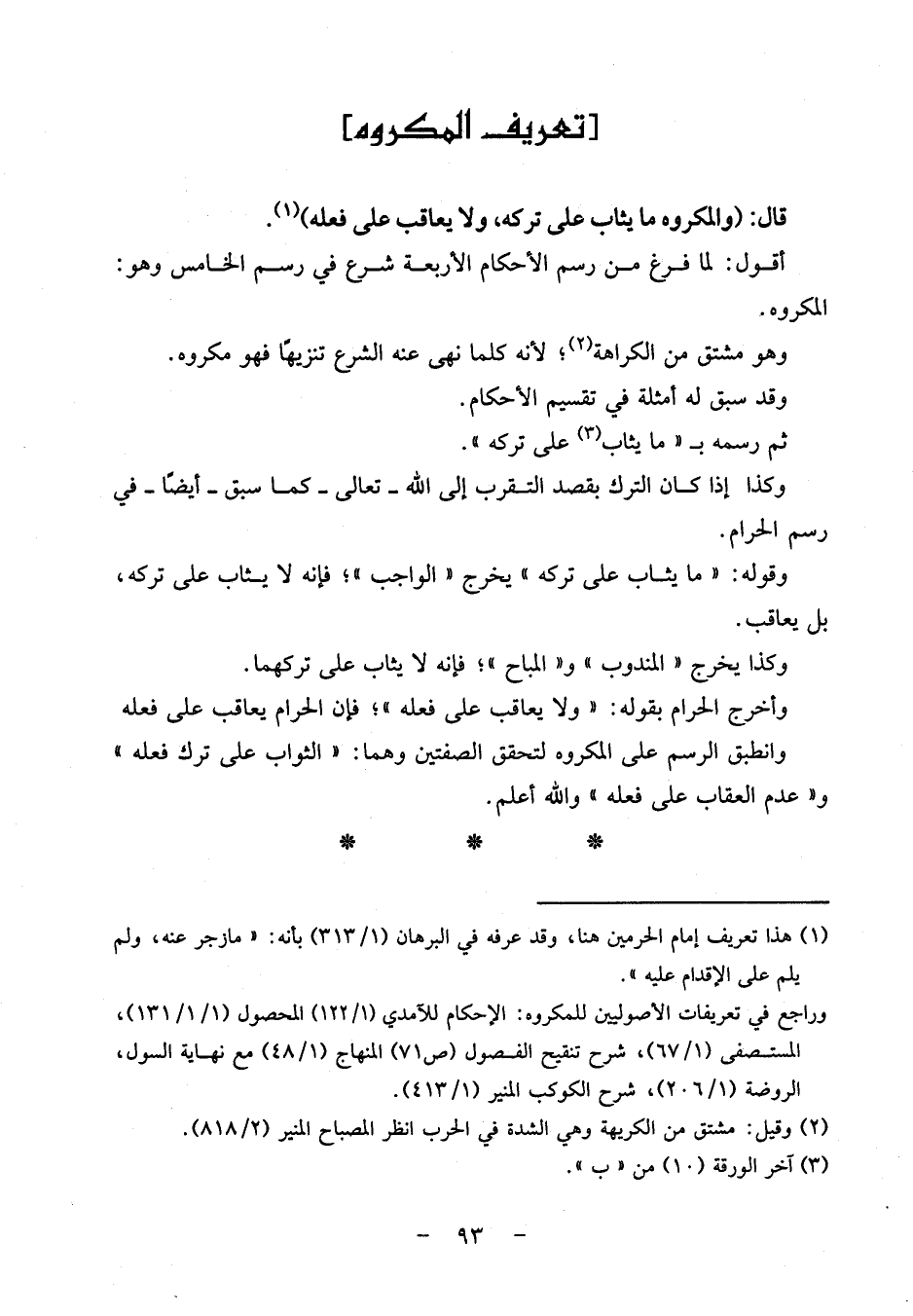 أَقُول: لما فرغ من رسم الْأَحْكَام الْأَرْبَعَة شرع فِي رسم الْخَامِس وَهُوَ: الْمَكْرُوه.