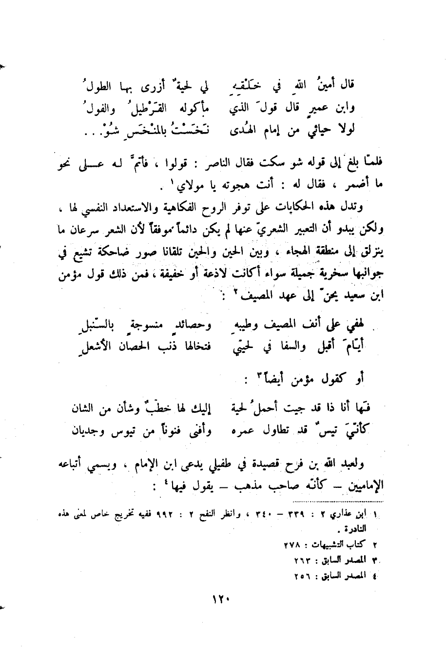 ما أرى ها هنا من الناس إلا ... ثعلبا يطلب الدجاج وذيبا أو شبيها بالقط ألقى بعينيه إلى فأرة يريد الوثوبا ... ويغرق في هذه النظرة الشكية الكافرة بالخير إذا هو استحضر ذكر المرأة، فالمرأة سرج للتداول، أو خان يتعاقب عليه النازلون أو ثمرة يأكلها أول مار بها (2) :