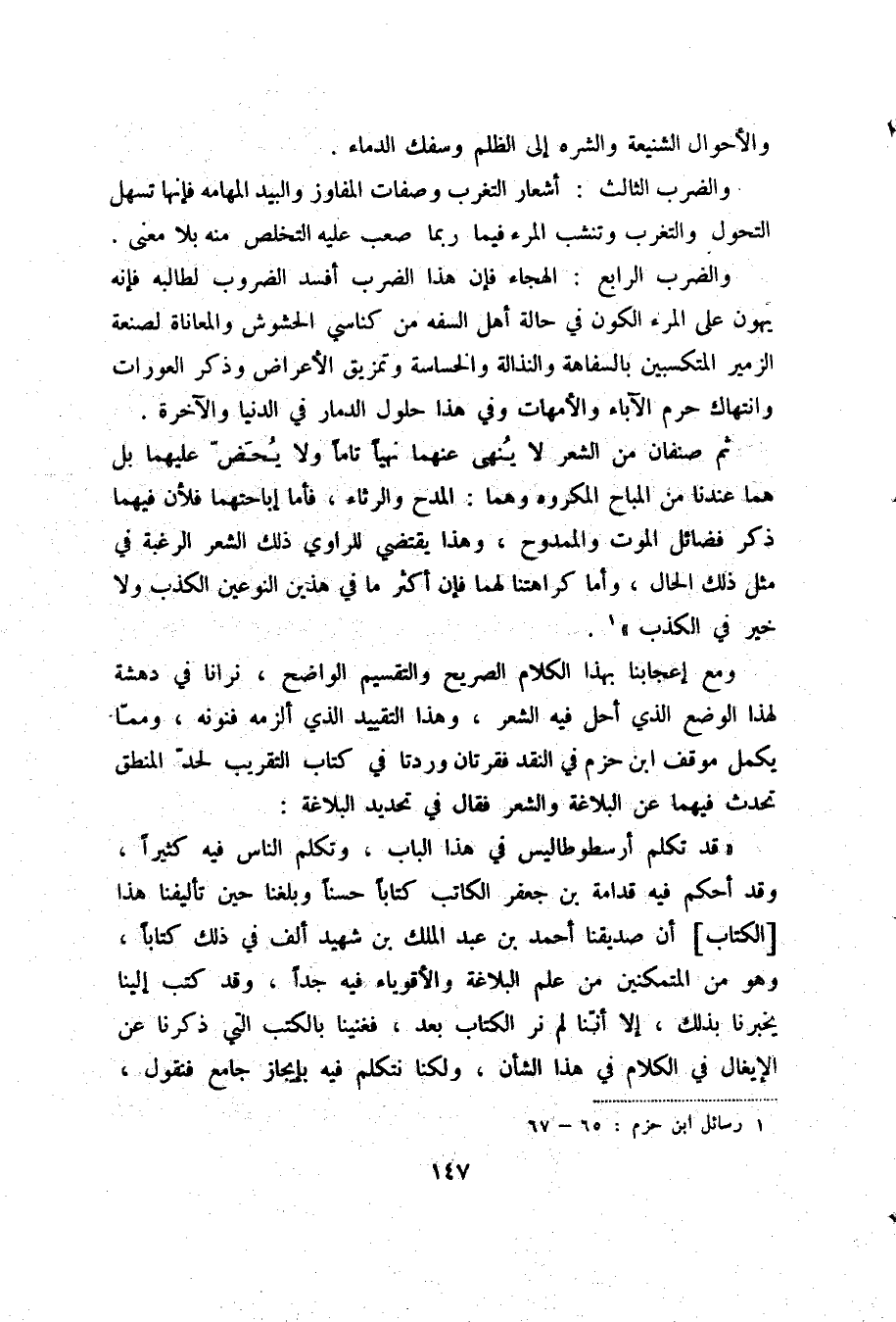وكانت صورتها هذا الفيض الكثير من النظم، ونقرأ شعره في الزهد وذم الحياة فلا نجد إحساساً حقيقيا بمعنى الخوف، ولا تشف إلا قطع قليلة عن الصدق العاطفي في هذه الناحية كقوله (1) :