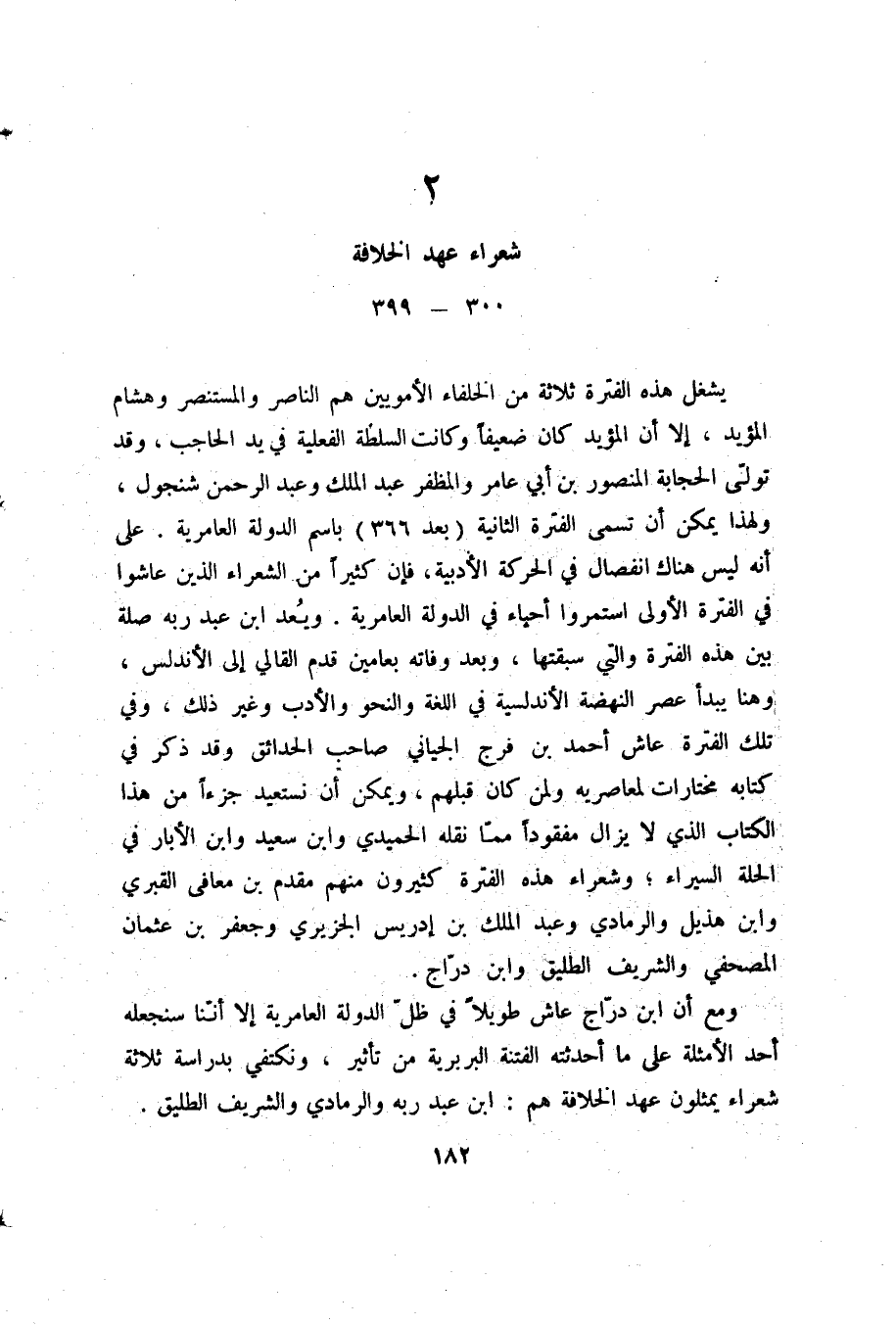 المتشابهة عند الشعراء ويضع في رسالته قاعدة للأخذ فيقول: " إذا اعتمدت معنى قد سبقك إليه غيرك فأحسن تركيبه وأرق حاشيته فأضرب عنه جملة وان لم يكن بد ففي غير العروض التي تقدم إليها ذلك المحسن تنشط طبيعتك وتقوى منتك " (1) . وقد كانت مشكلة الأخذ هذه؟ فيما يبدو - من اكبر المسائل التي شغلت ابن شهيد، لأنها أساس من الأسس التي تعتمد عليها طريقته الشعرية، فليس عجيبا اذن ان يمدح أبا المطرف عبد الرحمن بن أبي الفهد بقوله: " وهو غزير المادة واسع الصدر حتى انه لم يكد يبقى شعرا جاهليا ولا إسلاميا إلا عارضه وناقضه، وفي كل ذلك تراه مثل الجواد إذا استولى على الأمد، لا يني ولا يقصر، وكان مرتبته في الشعراء أيام بني أبي عامر دون مرتبة عبادة في الزمام، فاعجب " (2) . وكان أيضاً شديد الإعجاب بالبديهة إلى جانب إعجابه بالمعارضة ولذلك وقف في " حانوت عطار " وقفات خاصة عند الشعراء الذين ينظمون الشعر على البديهة. وما ذلك الا لقدرته هو أيضاً على هذا الفرع من الشعر ومن ثم نسمعه يقول: " وإنما يتبين تقصير المقصر وفضل السابق المبرز إذا اصطكت الركب وازدحمت الحلق واستعجل المقال ولم توجد فسحة لفكرة ولا امكنت نظرة لروية " (3) .