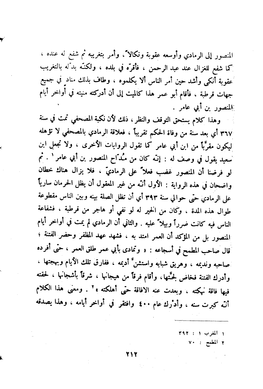 وصبت إلى نحر الصبا فاستخلصت ... سكن الليالي والنهار المبصرا والمعنى أن هذه الجمال؟ وشبهها بالهدي الذي ينحر في عرفات - قد استنفذت منا دماء نحورها حين ظلت منحرا في كل وجه، أي ما عاشت إلا لتموت، فواجهت الدبور فأثارت مضاجع قلقة في جو اغبر، ثم مالت إلى نحر الصبا فلما قتلت الصبا استخلصت هدوء الليالي والنهار المبصر، وانما جاءه هذا التكلف من طلب المعنى، ومن الإلحاح على صورة النحر والفداء. ويقول في قصيدة أخرى: