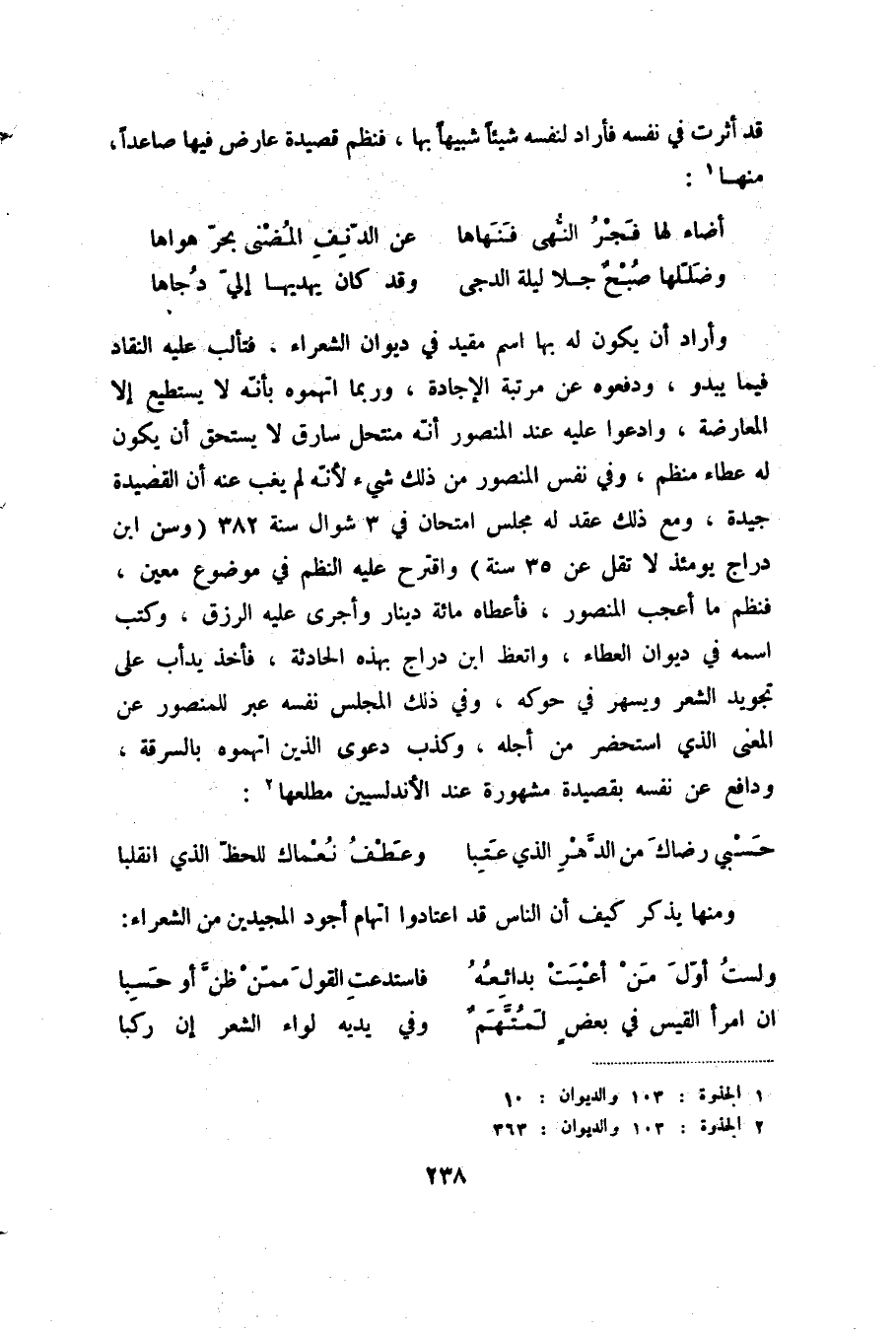 إذا الشمس رامت فيه أكل لحومنا ... جرى جشعنا فوق الجياد لعابها ويستشف من رسالته هذه ان المتنبي هو الرمز الكبير الذي كان يأسره ويملك إعجابه ويدفعه إلى المحاكاة وتوليد المعاني. وقد أدى ابن شهيد