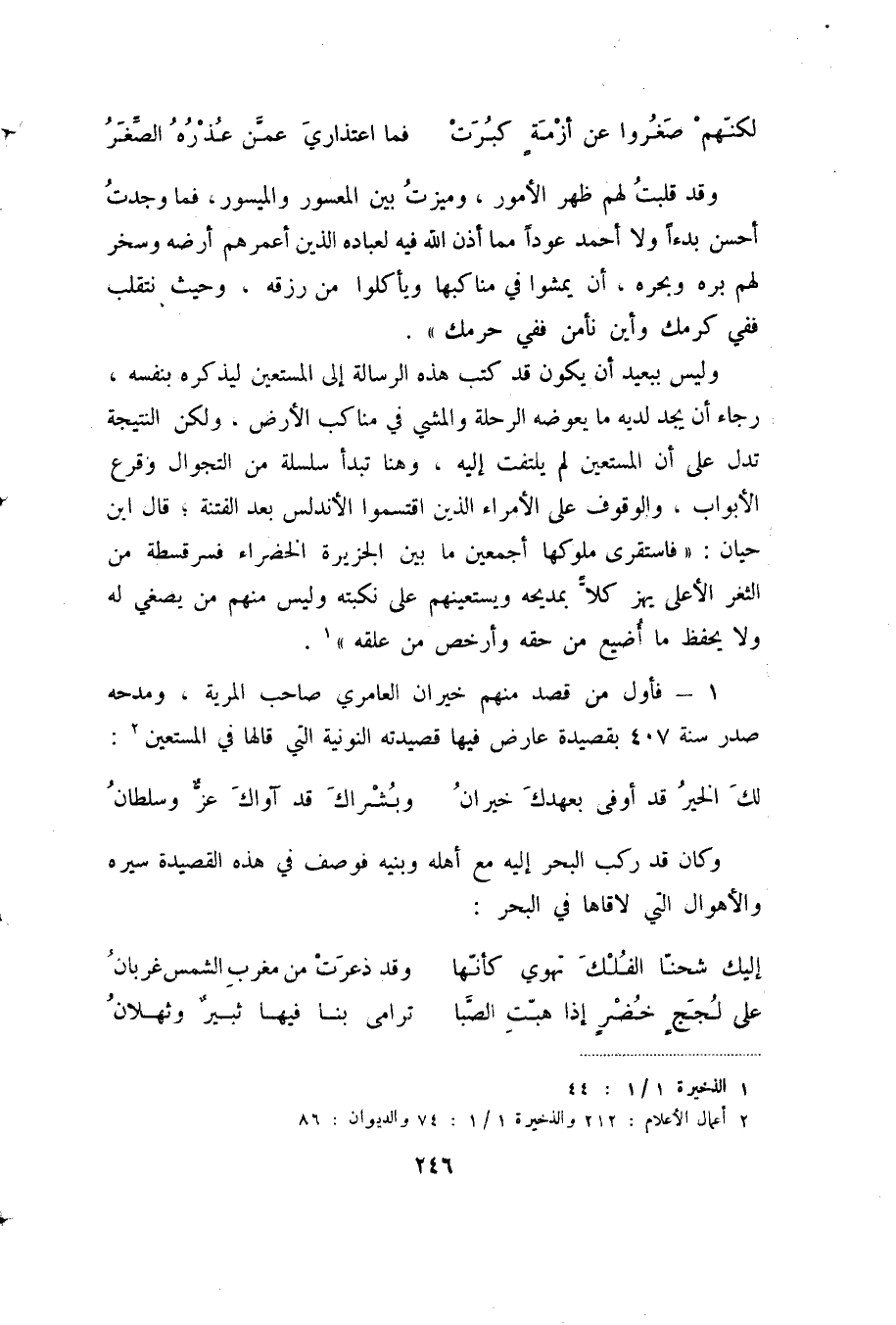 فما أخرت حرب مراتب سؤددي ... ولا قعدت بي عن ذرى المجد فارس وكلا النسبين لا يدعيان النسبة إلى العرب، ولكن الفرق بينهما ان الثاني يمنح ابن حزم عددا كثيرا من الأدباء المسلمين ويعل لأسرته جذورا