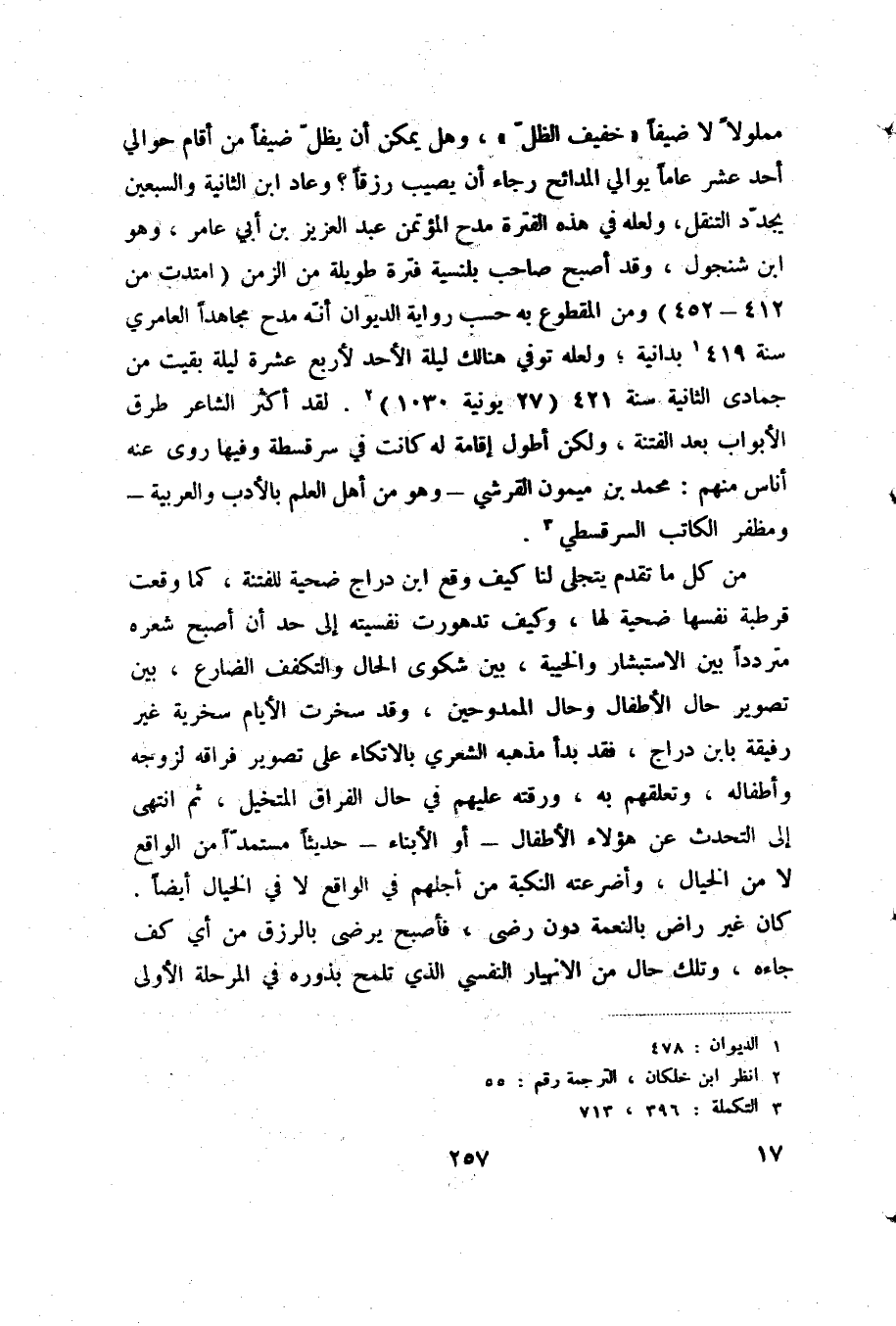 (1) نقله المقري في النفح 1: 364، أما ما ورد في كتاب صاعد فهو " ولأبي محمد بن حزم بعد هذا نصيب وافر في علم النحو واللغة وقسم صالح من قرض الشعر وصناعة الخطابة " (طبقات الأمم: 87) .