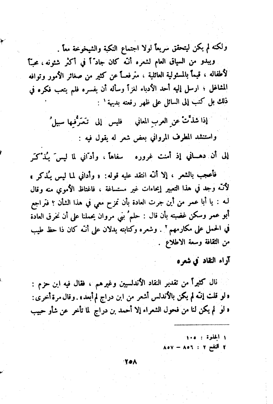 كان ابن حزم ذكيا سريع الحفظ واسع الاطلاع متفانيا في طلب العلم ونشره. وكان في شخصه متواضعا عاملا بعلمه زاهدا في الدنيا متدينا كريم النفس، وقد اتهمه ابن حيان بأنه يجهل " سياسة العلم " لحدة فيه وشدة عارضته في الرد على الخصوم، وعدم الاعتماد على التلميح والتعريض والأناة في التوجيه، وربما كان بعض ما يشوب هجماته من مرارة راجعا إلى فيض عاطفي أصيل احتبسه التدين في نفسه، حتى أننا لنسمعه يقول: أن من مات في ساعة الوداع في ساعة الوداع كان معذورا (1) ، ولما نعي إليه من يحب فر إلى المقابر. ولما ماتت جارية كان يحبها مكث اشهرا والحزن عليه غالب، وصرح بظمأ دائم إلى الألفة والمحبة فقال انه لم يرو من ماء الوصل قط. هذا إلى أن تربيته الأولى بين الجواري قد غرست في نفسه سوء الظن بالعلاقات بين الرجال والنساء وع غيرة شديدة وجدت في طبعه. وكان أصدقاؤه يتهمونه بأنه مذل بالأسرار لا يكاد يحفظ سرا، غير ان ذلك لم ينقض فيه خلتين لازمتاه طوال حياته وهما: الوفاء وعزة النفس، وهذه الثانية هي التي منحته صلابة عجيبة في مواقفه من الآراء ومن حكام عصره. وقد طبع كذلك على التأني والتربص
