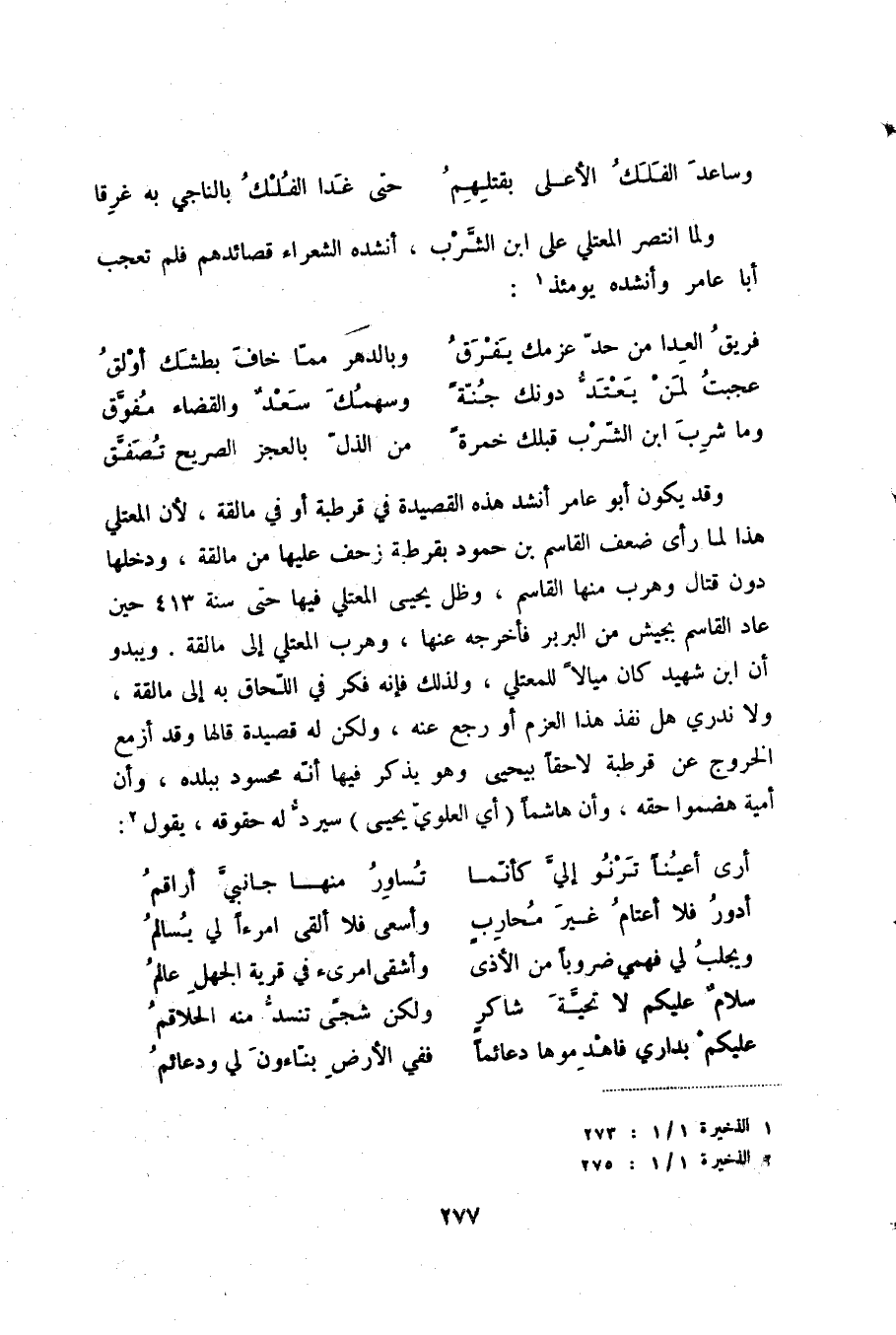 وقد اكتفى بمقابلة ثلاثة من شعراء الجاهلية وانتقل من بعدهم إلى لقاء المحدثين ولم يأبه بالوقوف على واحد من شعراء صدر الإسلام والدولة الأموية وأغلب الظن انه لا يقابل إلا من تربطهم به رابطة من محاكاة أو معارضة. وبدأ من المحدثين بأبي تمام فصوره صورة عجيبة حين جعل صاحبه يسكن تحت الماء، وانه إنما يفعل ذلك حياء من التحسن باسم الشعر وهو لا يحسنه، وهذا حكم عجيب. وقد زعم ابن شهيد أن أبا تمام اشتنشده فلم ينشده إجلالا، ثم أنشده فأكثر، وأوصاه أبو تمام وصية جيدة، كما كان يوصي تلميذه البحتري ذات يوم، فقال: " فإذا دعتك