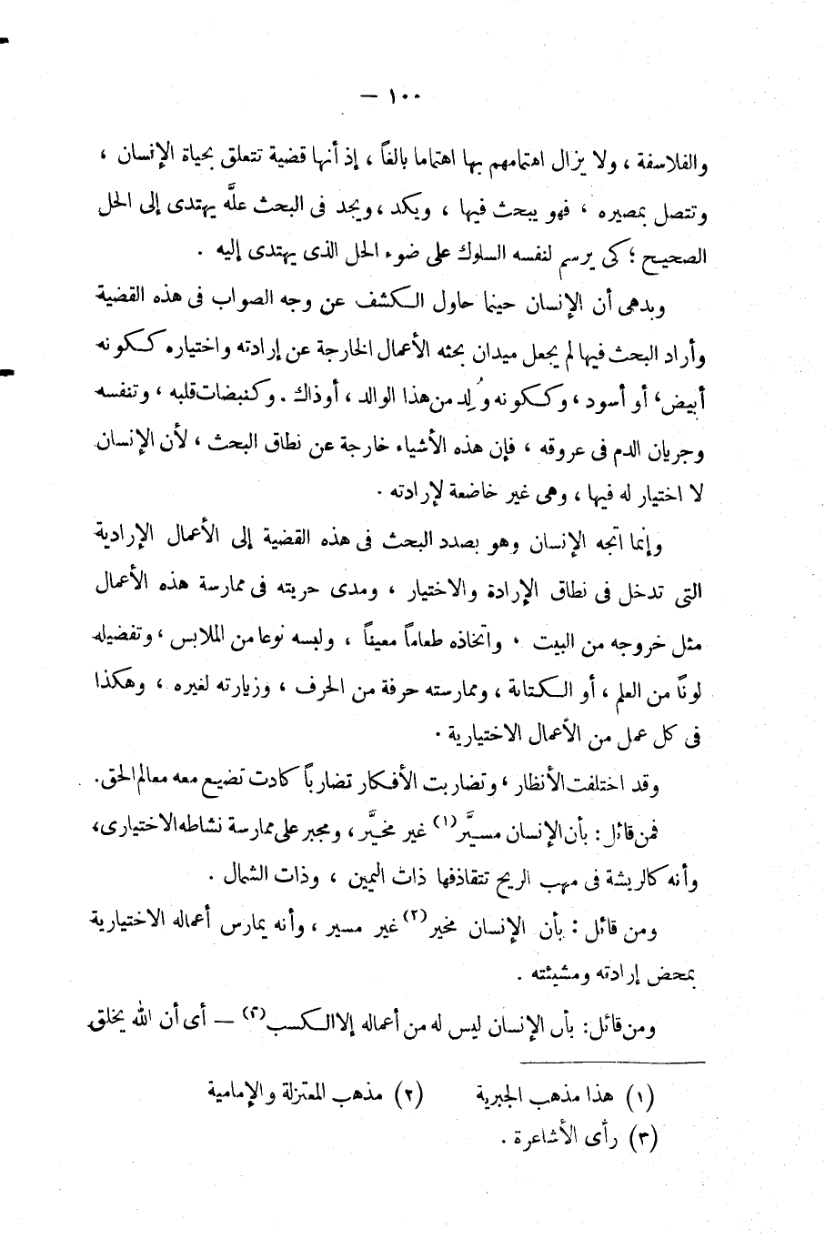 ومن قائل بأن الإنسان مخيّر (¬2) غير مسيّر, ,انه يمارس أعماله الاختيارية بمحض إرادته ومشيئته.