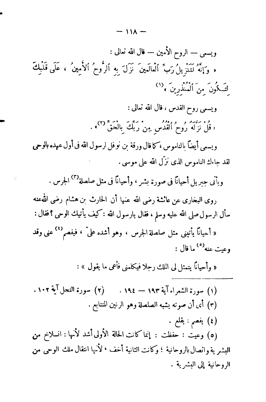 (¬5) وعيت: حفظت .. إنما كانت الحالة الأولى أشد، لأنها انسلاخ من البشرية واتصال بالروحانية؛ وكانت الثانية أخف، لأنها انتقال ملك الوحى من الروحانية إلى البشرية.