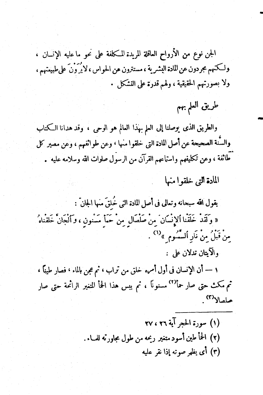 {وَلَقَدْ خَلَقْنَا الإِنْسَانَ مِنْ صَلْصَالٍ مِنْ حَمَأٍ مَسْنُونٍ * وَالْجَانَّ خَلَقْنَاهُ مِنْ قَبْلُ مِنْ نَارِ السَّمُومِ} (¬1).