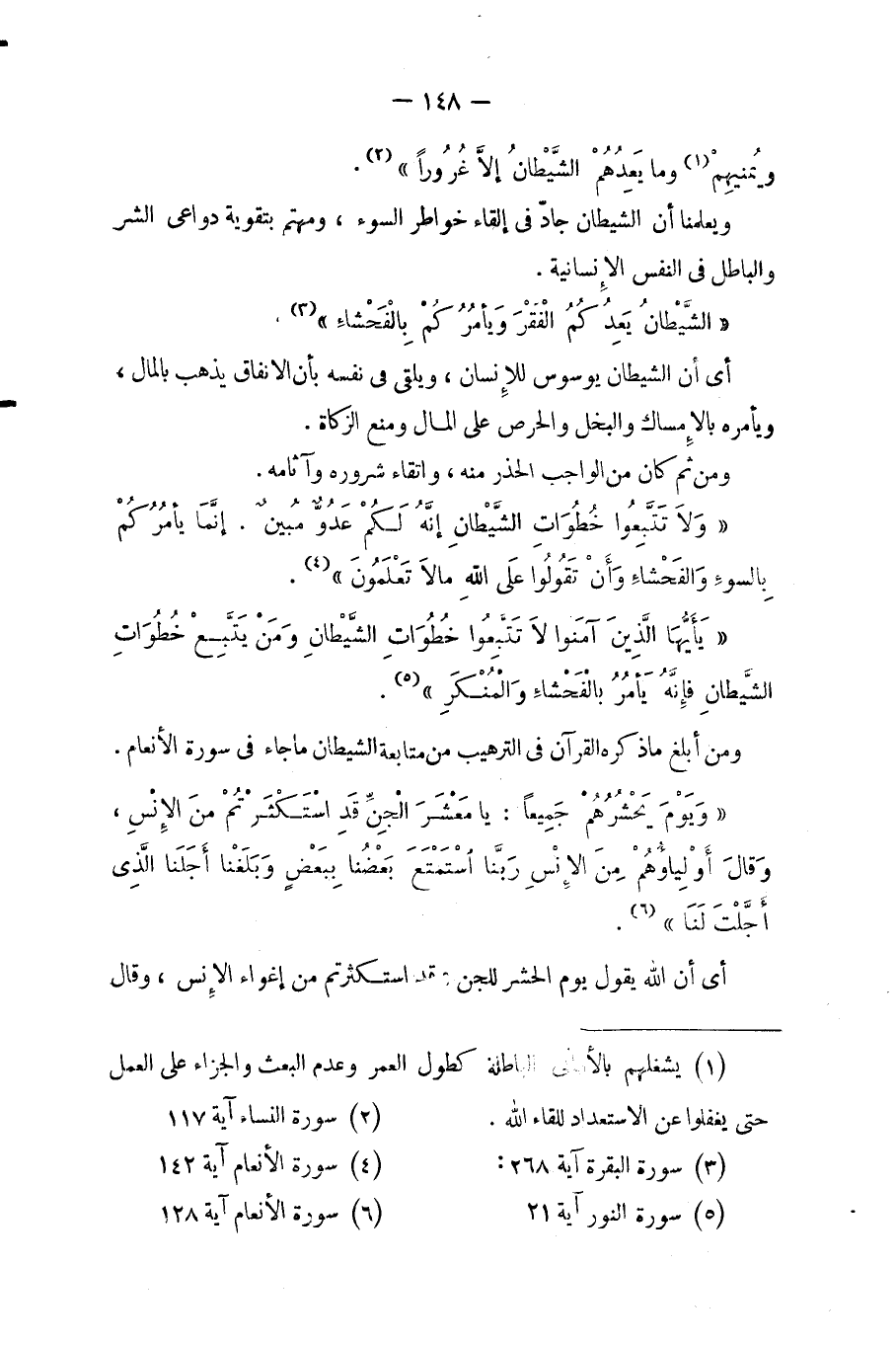 {يَا أَيُّهَا الَّذِينَ آمَنُوا لا تَتَّبِعُوا خُطُوَاتِ الشَّيْطَانِ وَمَنْ يَتَّبِعْ خُطُوَاتِ الشَّيْطَانِ فَإِنَّهُ يَأْمُرُ بِالْفَحْشَاءِ وَالْمُنْكَرِ} (¬5).