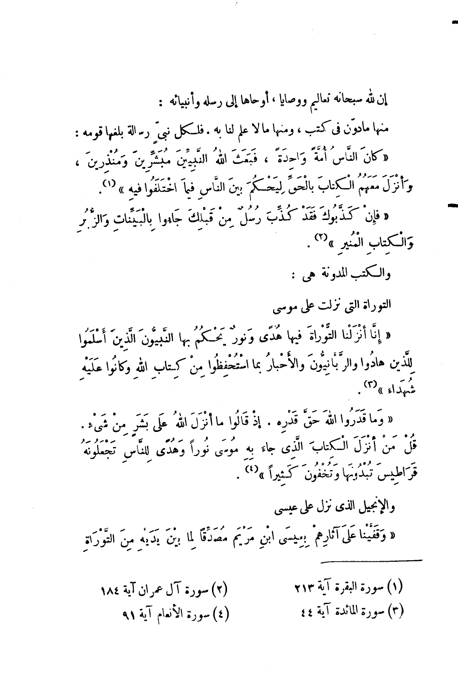 {كَانَ النَّاسُ أُمَّةً وَاحِدَةً فَبَعَثَ اللَّهُ النَّبِيِّينَ مُبَشِّرِينَ وَمُنْذِرِينَ وَأَنْزَلَ مَعَهُمُ الْكِتَابَ بِالْحَقِّ لِيَحْكُمَ بَيْنَ النَّاسِ فِيمَا اخْتَلَفُوا فِيهِ} (¬1).