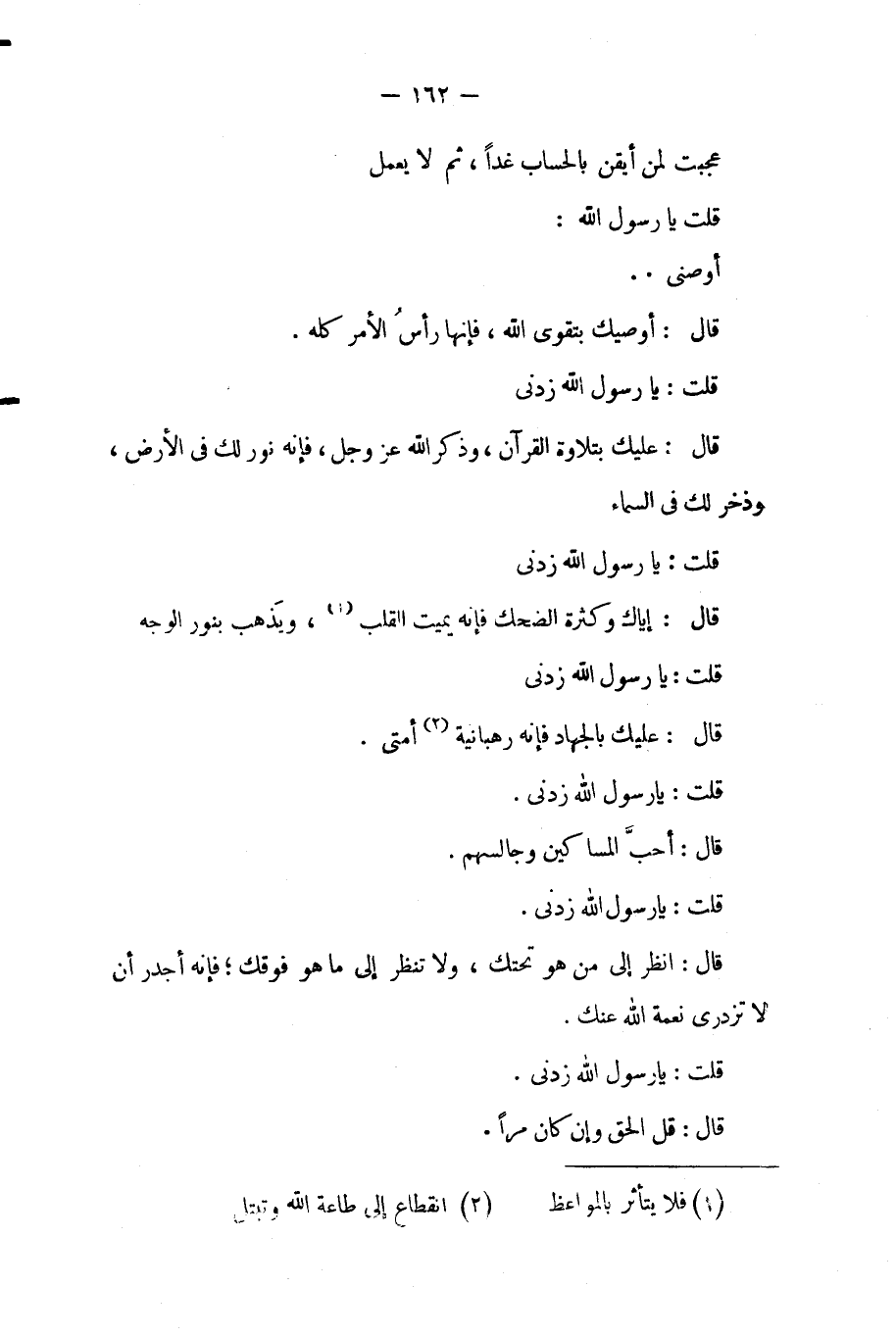 قلت: يا رسول الله، زدنى .. قال: «عليك بالجهاد، فإنه رهبانية (¬2) أمتى».