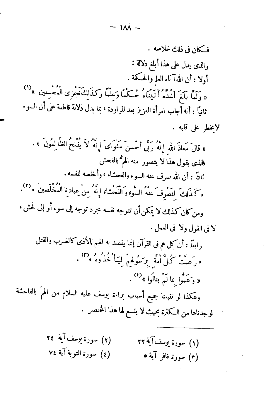 {كَذَلِكَ لِنَصْرِفَ عَنْهُ السُّوءَ وَالْفَحْشَاءَ إِنَّهُ مِنْ عِبَادِنَا الْمُخْلَصِينَ} (¬3).