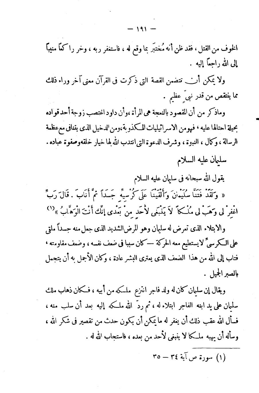 {وَلَقَدْ فَتَنَّا سُلَيْمَانَ وَأَلْقَيْنَا عَلَى كُرْسِيِّهِ جَسَداً ثُمَّ أَنَابَ *قَالَ رَبِّ اغْفِرْ لِي وَهَبْ لِي مُلْكاً لا يَنْبَغِي لِأَحَدٍ مِنْ بَعْدِي إِنَّكَ أَنْتَ الْوَهَّابُ} (¬1).