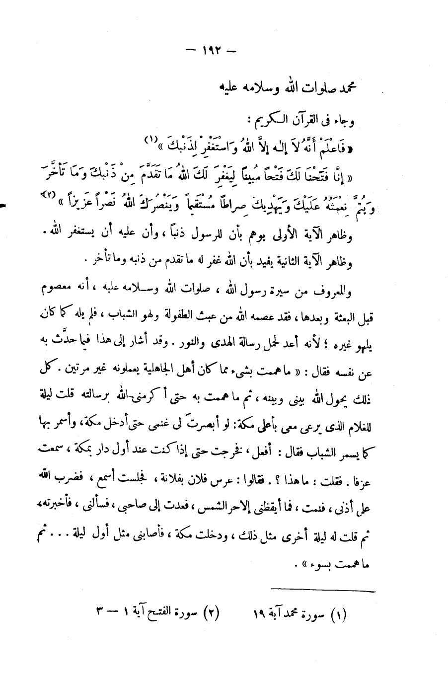 {إِنَّا فَتَحْنَا لَكَ فَتْحاً مُبِيناً *لِيَغْفِرَ لَكَ اللَّهُ مَا تَقَدَّمَ مِنْ ذَنْبِكَ وَمَا تَأَخَّرَ وَيُتِمَّ نِعْمَتَهُ عَلَيْكَ وَيَهْدِيَكَ صِرَاطاً مُسْتَقِيماً *وَيَنْصُرَكَ اللَّهُ نَصْراً عَزِيزاً} (¬2).