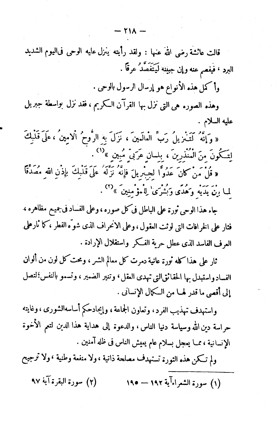 {وَإِنَّهُ لَتَنْزِيلُ رَبِّ الْعَالَمِينَ *نَزَلَ بِهِ الرُّوحُ الأَمِينُ *عَلَى قَلْبِكَ لِتَكُونَ مِنَ الْمُنْذِرِينَ *بِلِسَانٍ عَرَبِيٍّ مُبِينٍ} (¬1).