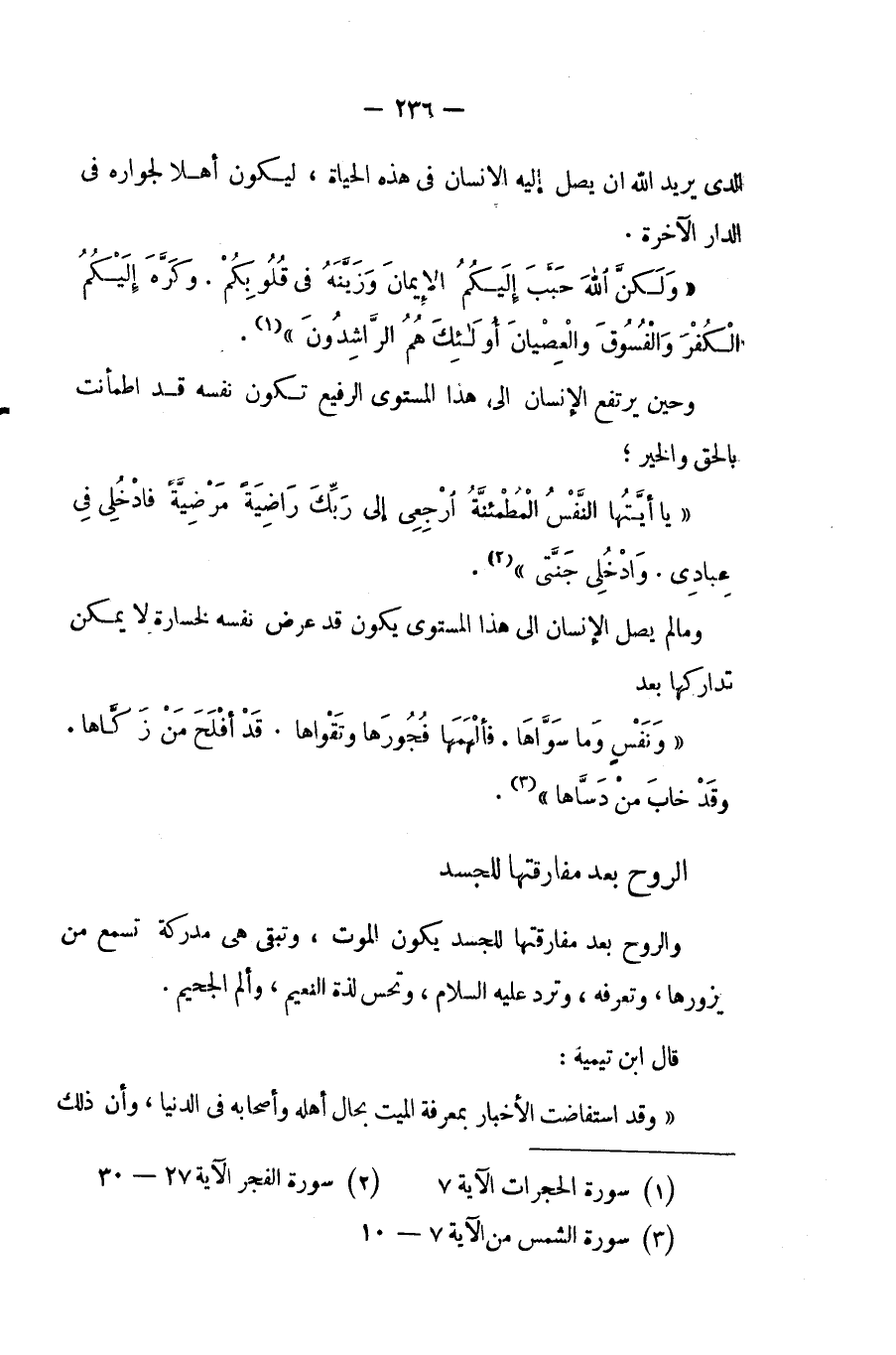 {وَنَفْسٍ وَمَا سَوَّاهَا *فَأَلْهَمَهَا فُجُورَهَا وَتَقْوَاهَا *قَدْ أَفْلَحَ مَنْ زَكَّاهَا *وَقَدْ خَابَ مَنْ دَسَّاهَا} (¬3).